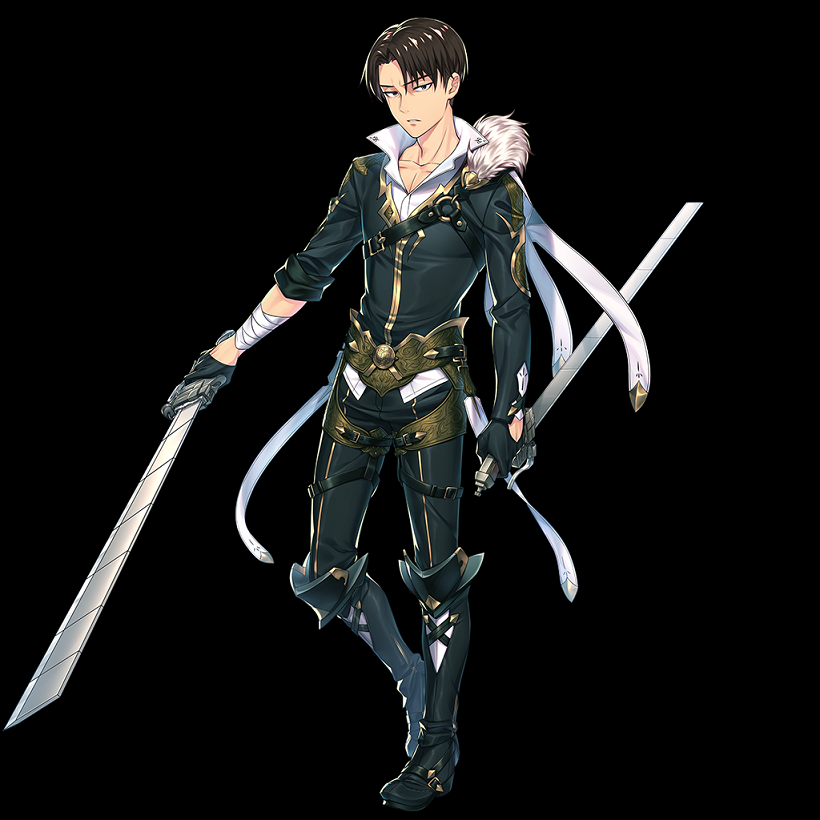大人気コミック「進撃の巨人」のキャラクター。作中でも圧倒的な強さと人気を誇るキャラで、エレン、ミカサと共に、コラボイベントとして期間限定で配信されていた。 調査兵団という特殊なクラスで、基本はニュートラル所属。 性能的には、他の二人と比べ、防御力にやや不安が残るが、それすら気にならない程の非常に高い攻撃力と素早さを誇る。