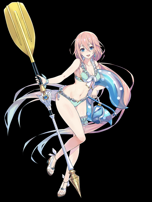 夏を楽しむための水着を身にまとったステラ。 戦闘スタイルもばっちり夏仕様。 これで渚のレジャーは完璧! ……のはずなのだが、なにやら問題があるらしく?