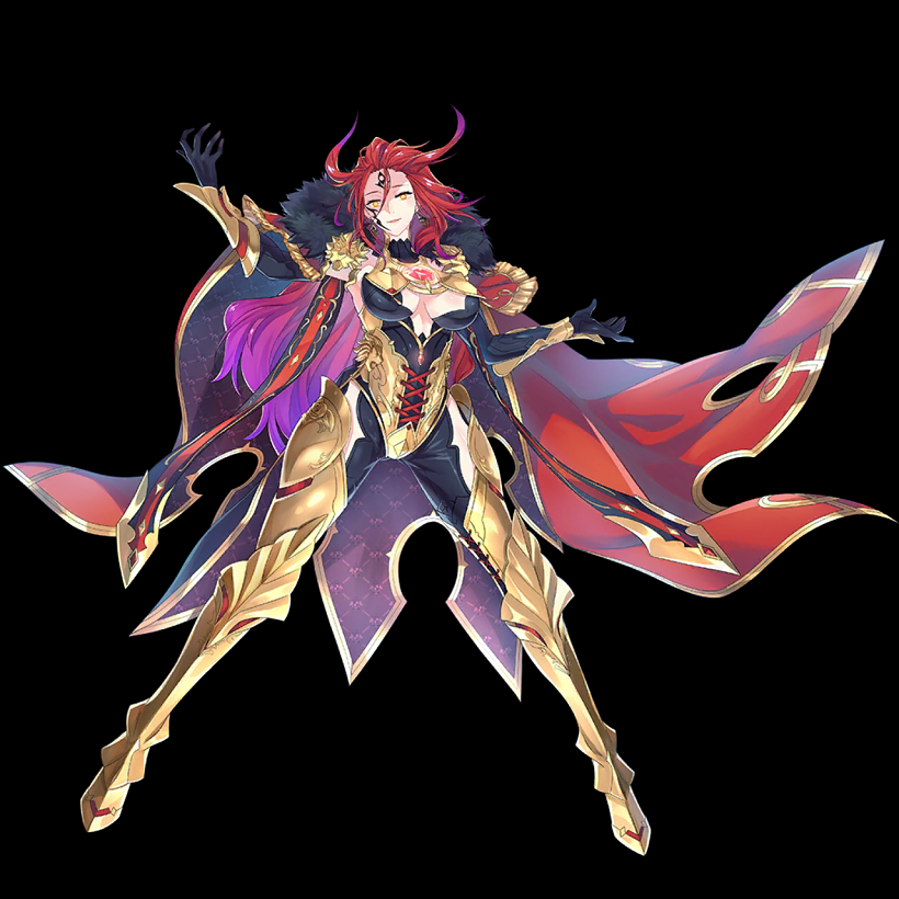 | 紅獅子王の威光[破] | 【最速】自身を威力101(130)の[オーバーカウンター]状態にする(2ターン) 味方全体の攻撃力を20%アップ(1ターン) このスキルによる攻撃を受けた敵を30%で[闇炎]にする | - | 自分 | 5 | 3 |