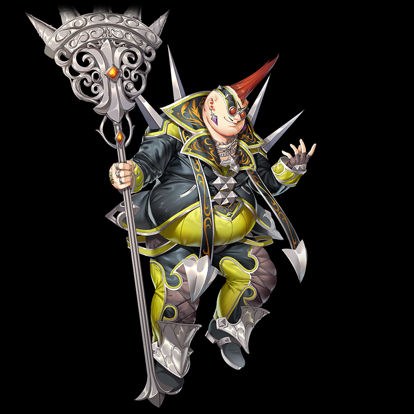初期実装の★3土属性ウィザード。シンボルマニア。 分岐前およびカオス分岐では、エレメンタルブラスト(EB)が貴重な土属性全体である。 現状でメセタ稼ぎの効率が最も良い金の鉱脈はボスエネミーのいない集団戦のため、効率的な周回に非常に役立つ。金掘りに長けるとは流石商人といった所か。 ただし土属性は相克で与ダメ・被ダメともにウィークとなるため、複数のエネミーに攻撃されても戦闘不能にならないだけの耐久性は確保したい。 またロウ分岐ではEBが単体攻撃に変化し、使用感が少々変わるので注意。