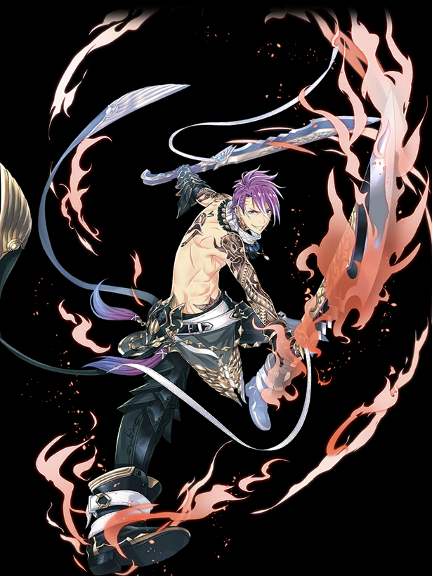 男性キャラ初の[EX]バージョンとして登場したジャスパーの火属性バージョン。イラストもジャスパーのイメージをそのままに、火属性らしく熱い男らしさを感じさせる非常に格好良いデザイン。